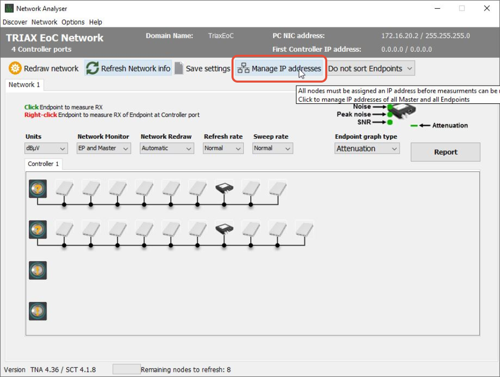 You are now ready to use the tool. Since this is the first startup of the TNA, you will experience it a bit different from the next time you will use it. The controller and the endpoints are without any IP addresses assigned. This will be handled in the next few steps.