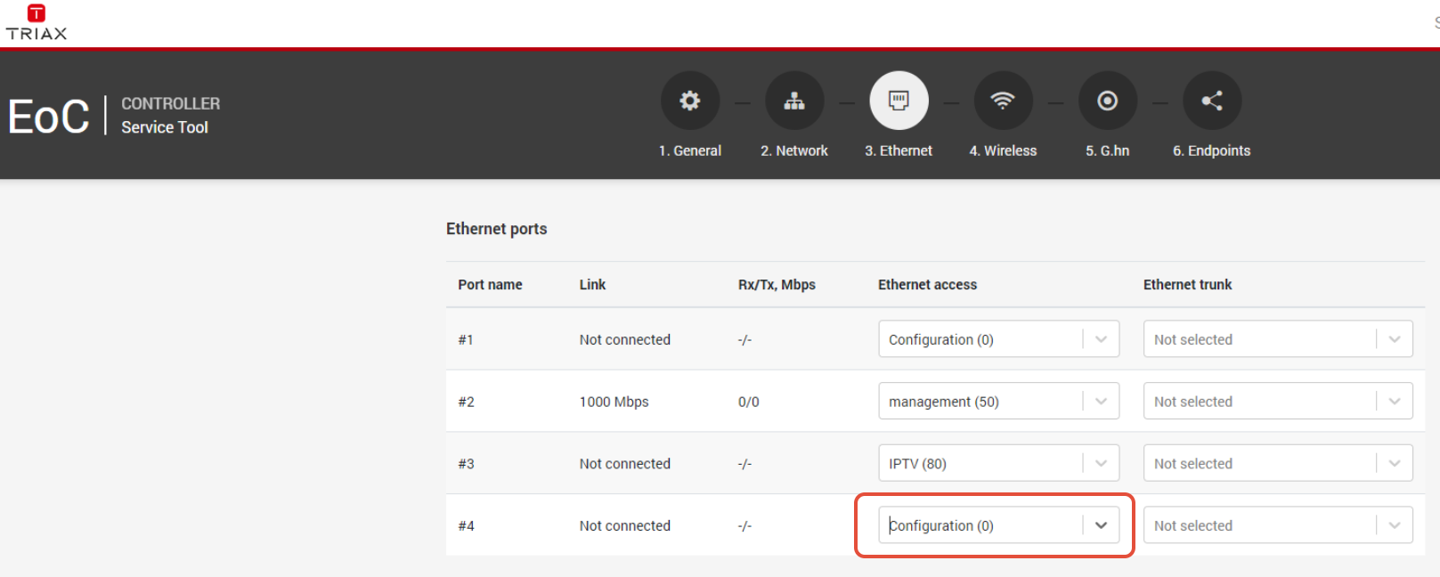 - Configure the Eth port 4 on the controller, to VLAN "Configuration (0)"