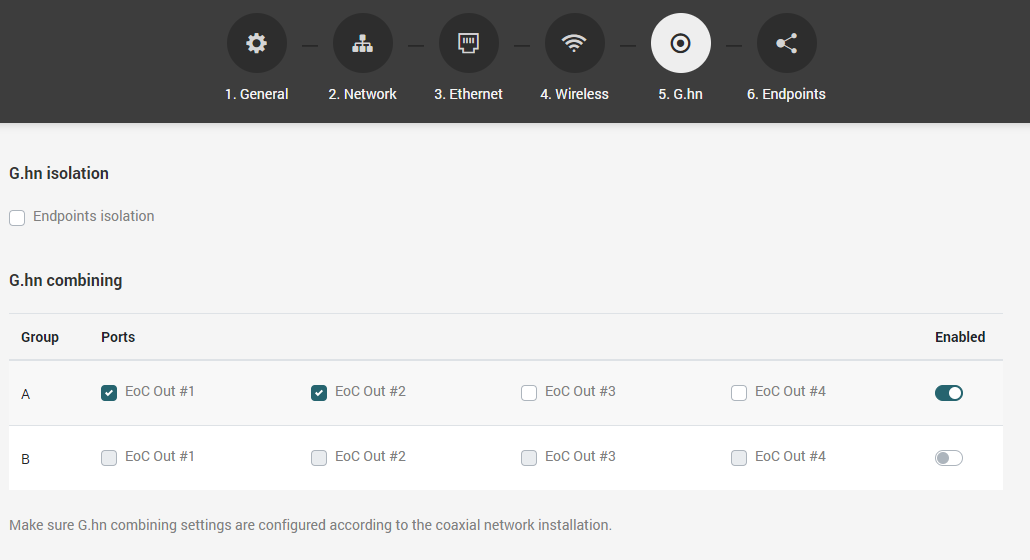Before doing the actual combining on the coax string, we need to configure the EoC out ports.