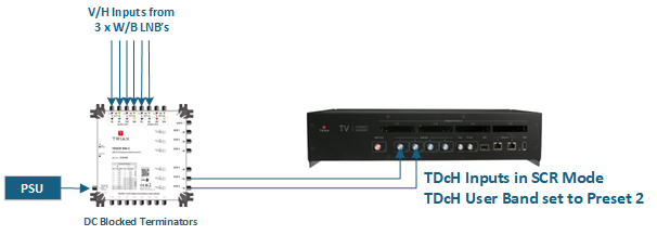 - Direct connection of DCSS LNB’s to the satellite Inputs of the TDcH:
