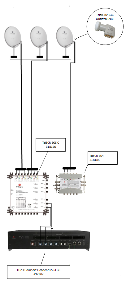 - 2 x Satellite Position, (Quattro LNB's), to the TdSCR 906C in Quattro Mode.